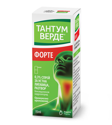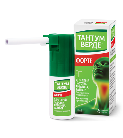 Тантум Верде Форте 0,30% спрей за устна лигавица, разтвор e лекарствен продукт без лекарско предписание. За възрастни. Съдържа бензидаминов хидрохлорид. Преди употреба прочетете листовката. ИАЛ: A-0344/17.11.2025
